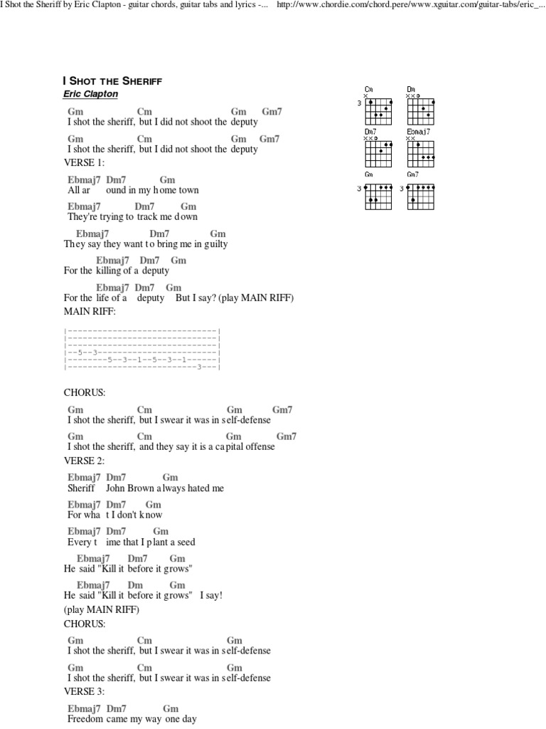 I Shot The Sheriff Chords And Riff Tab I Shot The Sheriff The Wailers Sheriff