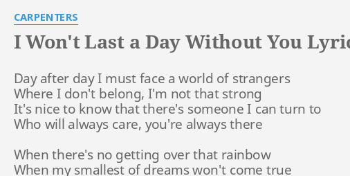 Love Song Lyrics For I Won T Last A Day Without You The Carpenters