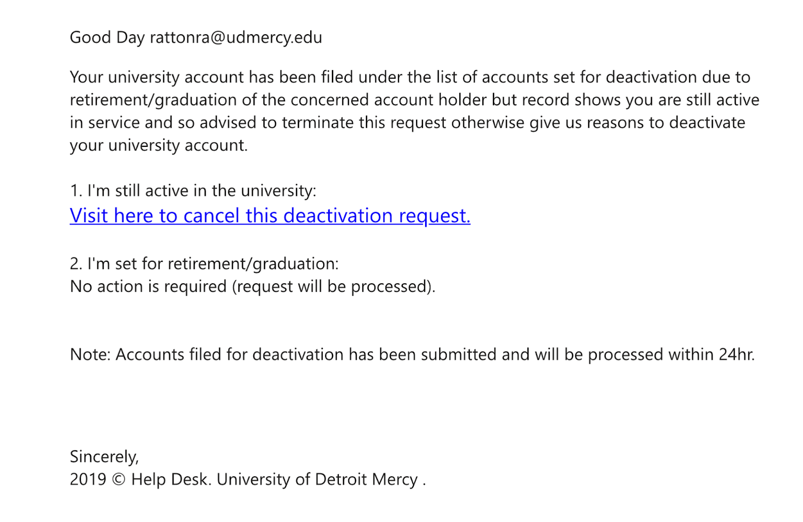 Udm Its Status Spam Phishing Warning A Request To Deactivate Youidhere Udmercy Edu Duplicate Of Earlier Posting
