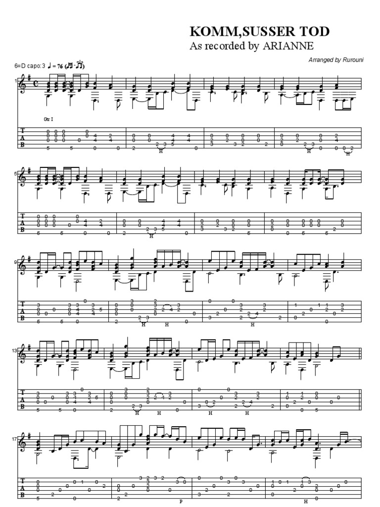 Komm Susser Tod Sheet And Guitar Tablature European Musical Instruments Chordophones