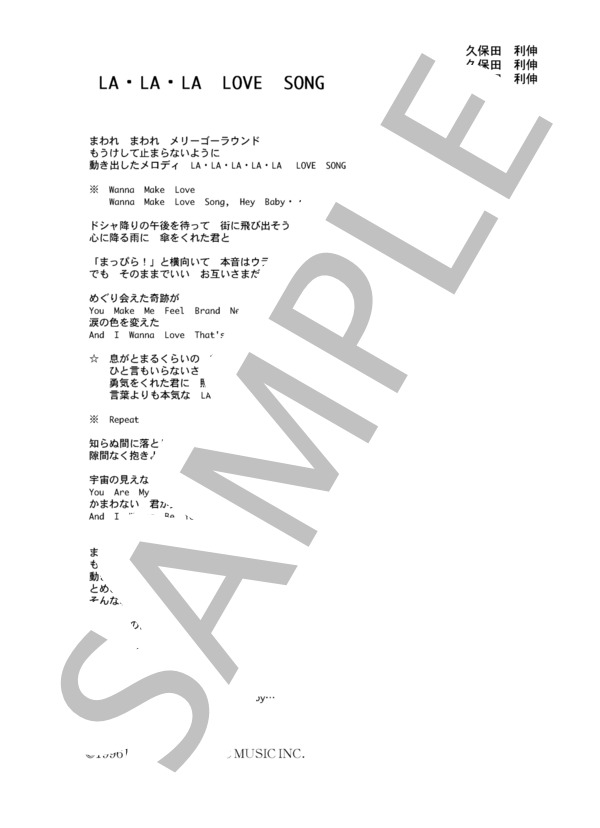 楽譜 久保田利伸 La La La Love Song コード 歌詞カード付きメロディ譜 久保田 利伸 メロディ その他 Piascore 楽譜ストア