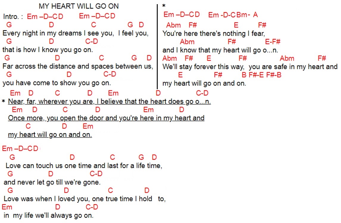 Chord My Heart Will Go On James Horner Will Jennings Tab Song Lyric Sheet Guitar Ukulele Chords Vip