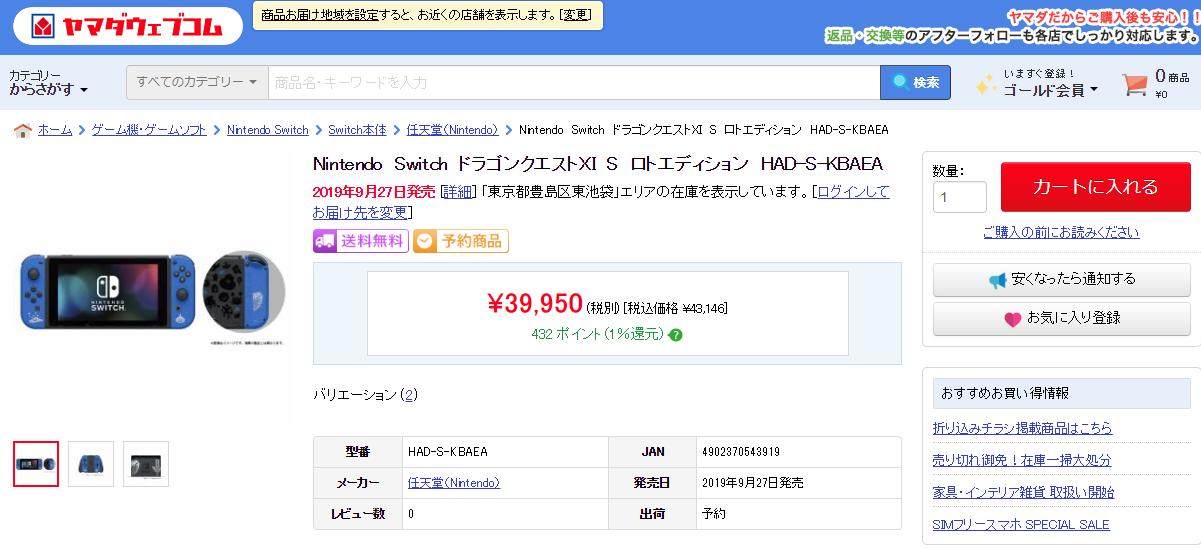 Usedoor On Twitter ヤマダ電機で Nintendo Switch ドラゴンクエストxi S ロトエディション が予約可能 Https T Co Q9qmgf5sv7 ロトエディション 在庫 予約 入荷