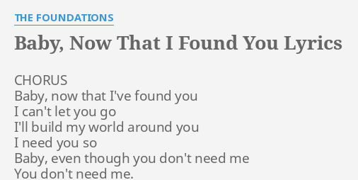 The Foundations Baby Now That I Found You Lyrics The Foundations Baby Now That I Found You Lyrics Music Video Metrolyrics